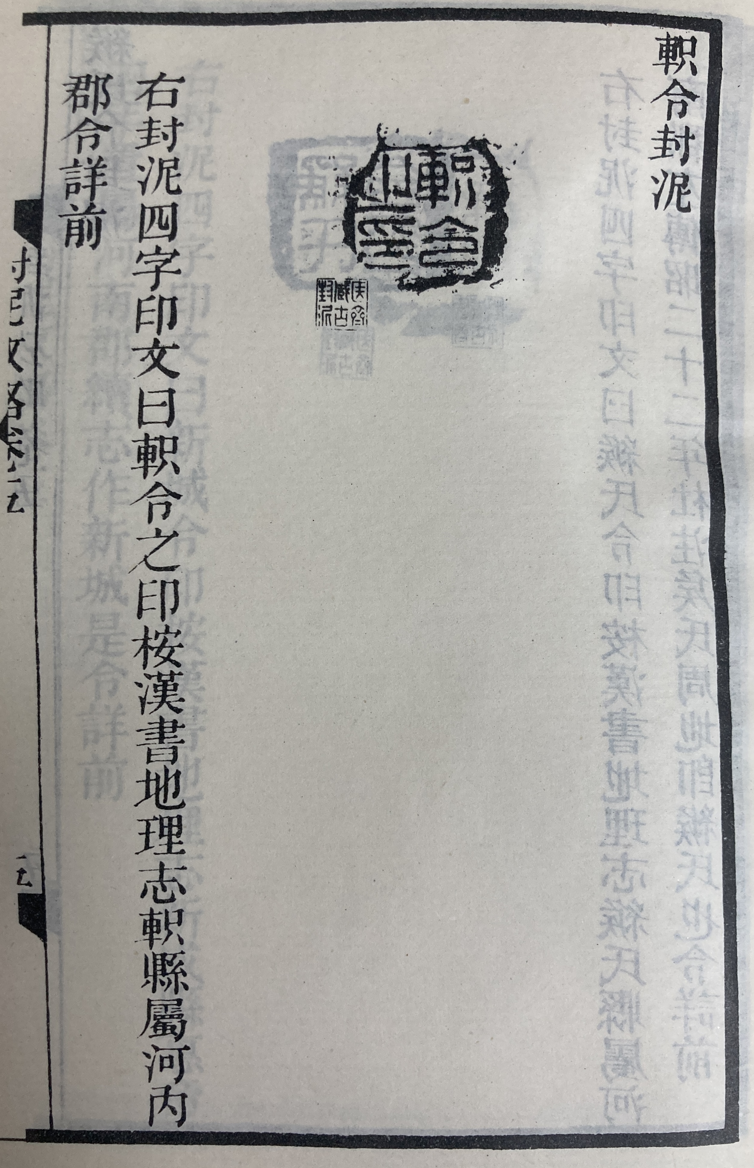 오른쪽 봉니 4자 인문印文은 “軹令之印(지령지인)”이다. 한서漢書 지리지地理志에 따르면 지현은 하내군河內郡에 속한다. (현)령은 앞서 설명했다.