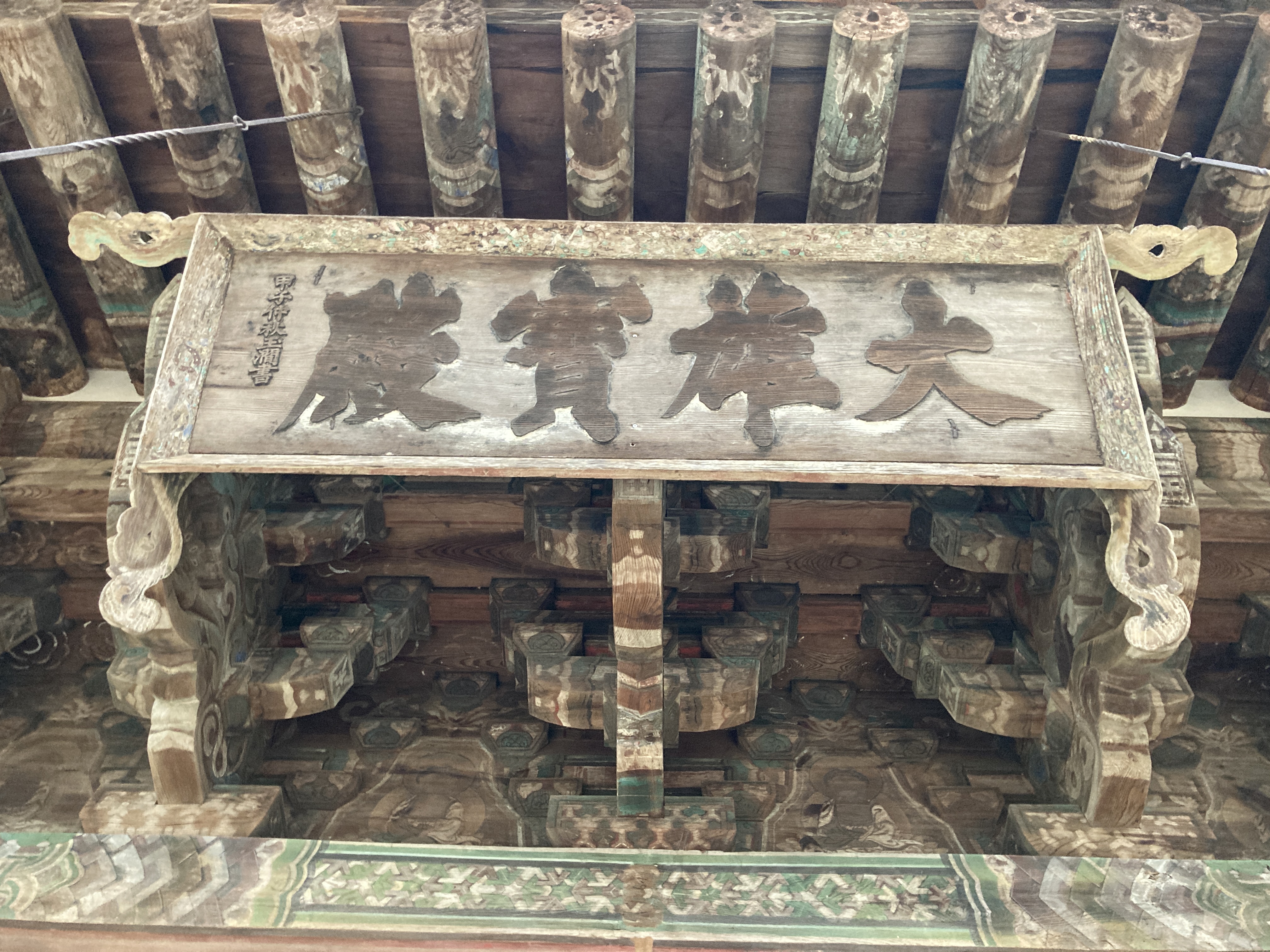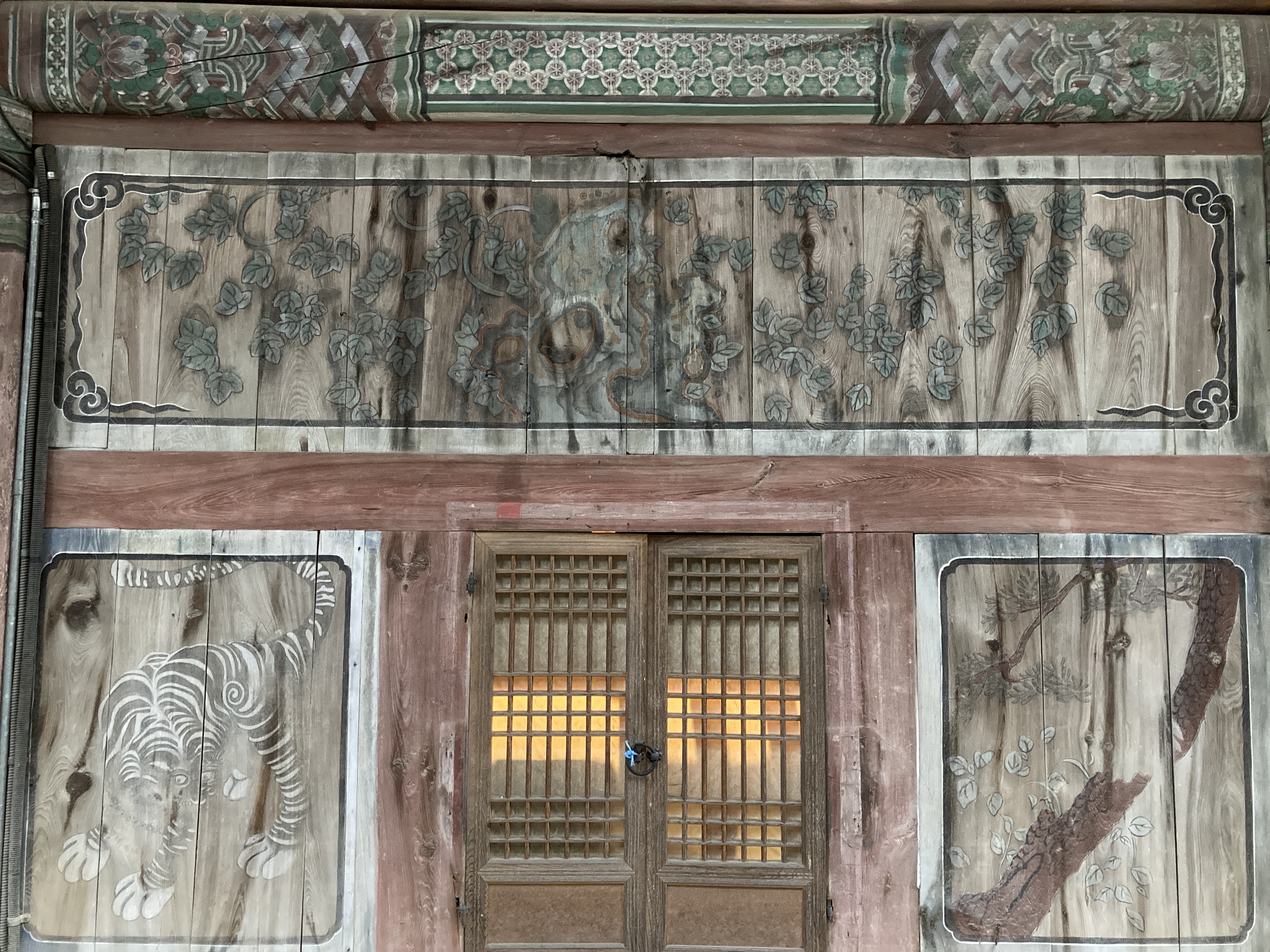 사찰로 들어서면 중심 건물인 대웅보전이 눈에 들어온다. 대웅보전은 1740년 경에 중건해다고 한다. 대웅보전의 편액의 글씨는 매우 시원스러운데, 절에 따르면 영조의 친필이라고 한다. 그러나 지금 건 현판은 “甲子中秋玉澗書(갑자중추옥간서)”로 볼 때 옥간(미상)이 쓴 것이지 영조가 쓴 것은 아닐 것이다. 또한 사찰 연표에서는 1740년 영조가 친필 현액을 내렸다고 했으나 1740년은 갑자년이 아니다. 대웅보전 외벽에는 다른 절에서는 볼 수 없는 뛰어난 벽화가 있다. 벽화 내용은 코끼리, 반야용선, 역사, 호랑이, 위태천, 까치 등으로 그림 솜씨가 훌륭한 것으로 볼 때 불화를 그리는 화승이 그렸던 것으로 보인다. 사진은 미처 찍지 못했으나 건물 안에 고종 때 조성한 불화가 많다.