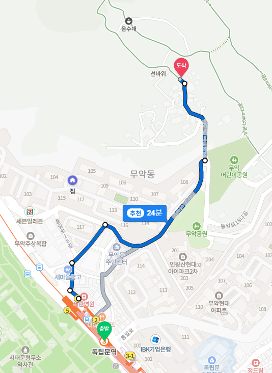 서울 인왕산은 궁궐 서쪽에 있다고 해서 서산으로 불렸다. 방어 시설로 산자락을 따라 성곽이 있다. 오늘은 인왕산에 있는 문화유산 국사당과 선바위를 보러 올라갔다. 인왕산에 오르는 사람은 대개 사직단社稷壇이나 황학정黃鶴亭, 또는 수성동 계곡으로 능선을 타고 이동하기에 지하철 3호선 경복궁역에 내리지만 국사당과 선바위를 보려면 지하철 3호선 독립문역(1번 출구)에서 내려서 가는 것이 편리하다. / 지도는 맨 뒤에 첨부