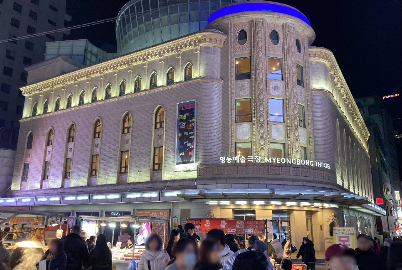 명동지하도에서 올라와 줄지어 있는 먹거리 노점을 따라 걸어가다 보면 왼편에 고풍스러운 건물 한 동이 있다. 국립극장 명동예술극장으로 일제강점기에는 ‘메이지자(또는 명치좌明治座)’로 불렸던 영화관이다.