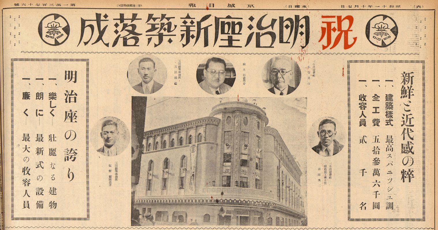 메이지자는 현재까지 도호(東寶), 도에이(東映)와 더불어 일본 삼대 영화사로 불리는 쇼치쿠(松竹)가 만든 영화관이다. 쇼치쿠는 1895년 공연장 영업을 시작해 1920년 쇼치쿠 키네마 합명회사를 설립하여 본격적으로 영화산업에 뛰어들었다. 같은 해에는 제국활동사진주식회사를 세우고 1923년 오사카쇼치쿠자大阪松竹座, 1930년 도쿄극장(東京劇場) 등을 열었다. 이와 더불어 1930년대부터는 조선에 진출, 영화를 보급하는 한편 조선인 배우도 물색했다.