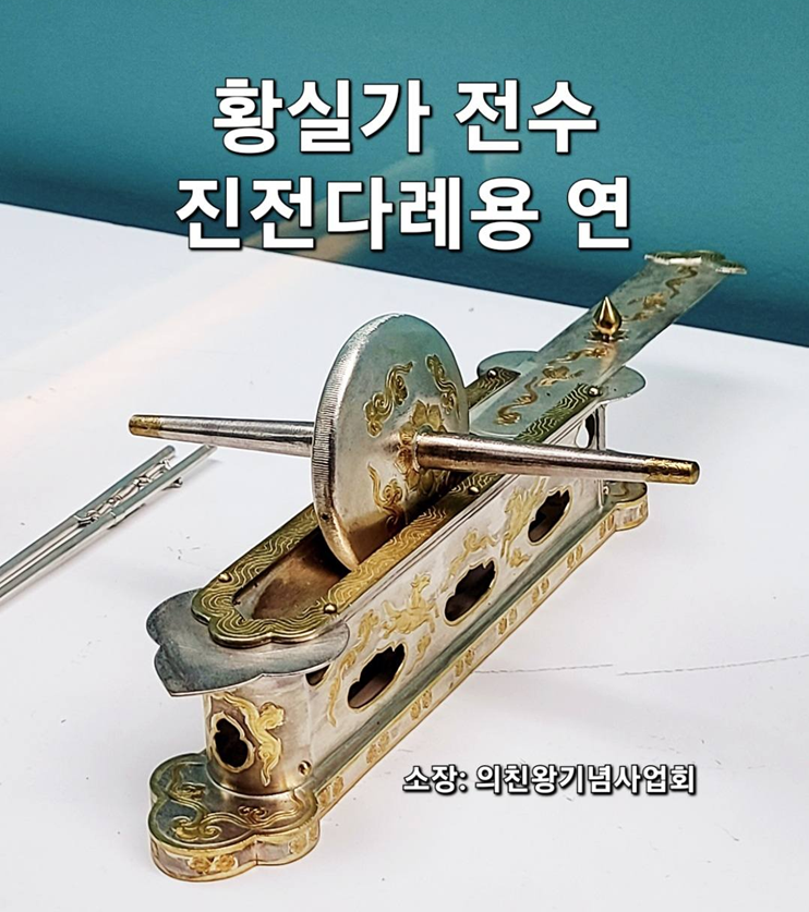 얼마 전 의친왕기념사업회 회장 이준은 페이스북 전체 공개의 글에 자신의 소장품 사진을 올렸다. 해당 물건은 차연茶硏 또는 차연자茶碾子라고 하는 것으로 찻잎을 잘게 부수는 도구다. 의친왕기념사업회는 사진에 큼지막하게 "황실가전수 전전다례용 연"이라고 썼다. 즉 의친왕 때부터 왕가('황가'는 일종의 참칭이다.)에서 대대로 사용한 것을 물려받았다는 것이다. 얼핏 보면 은제에 부분부분 금도금한 것이 마치 20세기 전반 이왕가 미술품 제작소 제작품처럼 보인다. 그러나 이것은 가짜다. 그것도 중국 당나라 때 물건을 복제한 것이다.