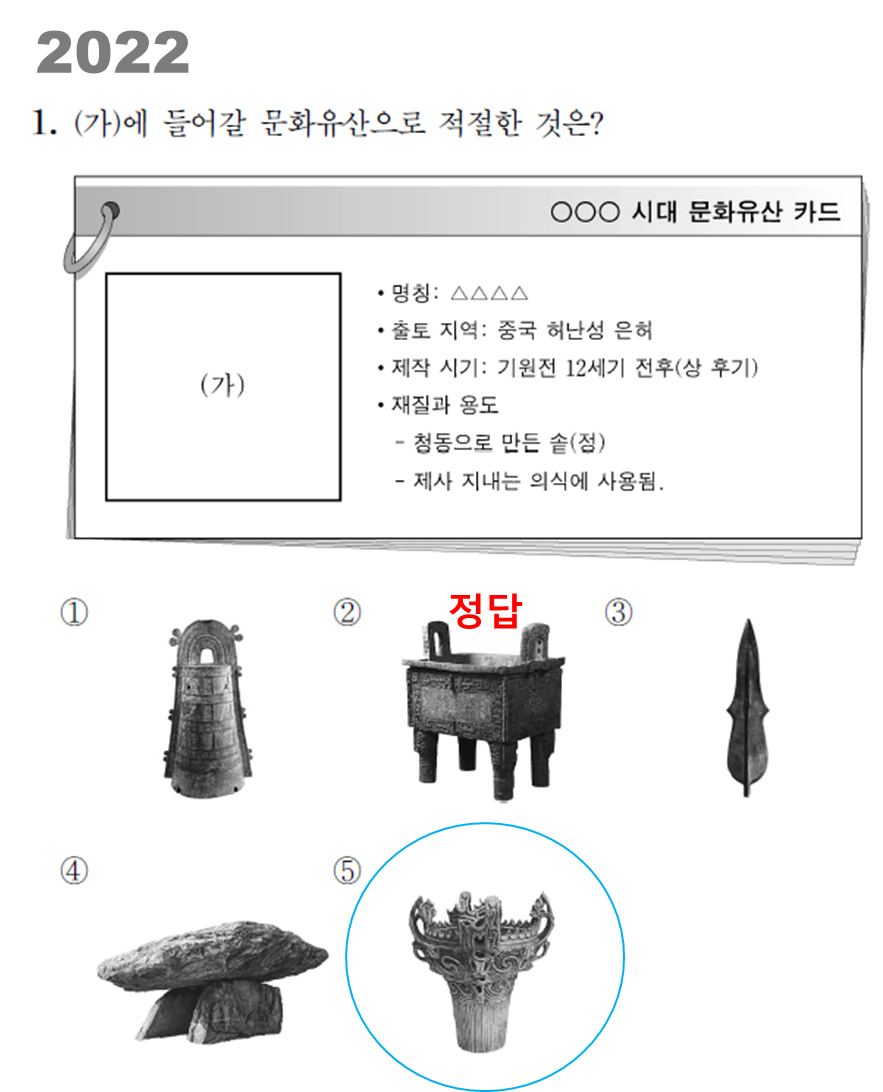 정답은 상대 청동기 정(鼎: 솥 정) ②였지만 ⑤에 나오죠. 그럼 2021년 문제를 볼까요?