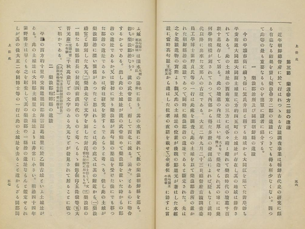 근년 조선총독부에서 진행 중인 고적조사사업은 조선고대사의 연구에 자못 유익한 결과를 주어 낙랑, 대방 2군의 유적에 대해서도 소득이 적지 않다. 따라서 이들 중 가장 중요한 것을 간단히 독자에게 소개한다. 1. 낙랑군 치소 및 동군 조선현의 유적