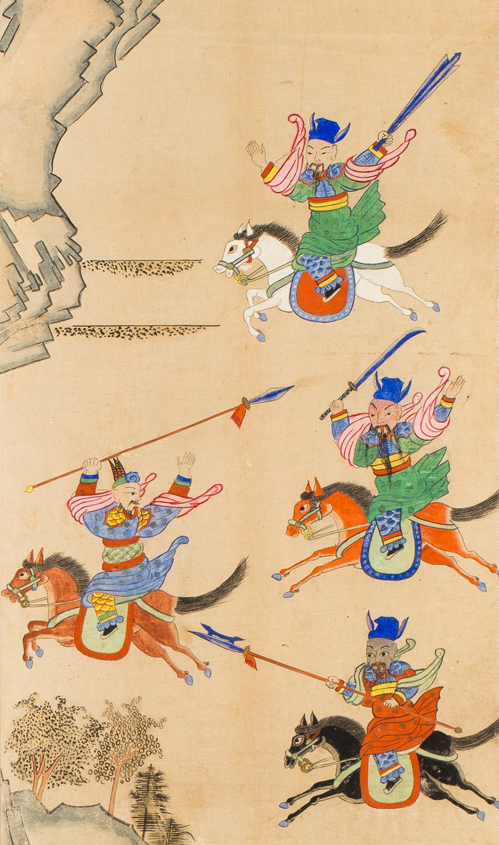 관병(關兵: 동탁의 군대)을 격파하고 세 영웅이 여포와 싸우다.